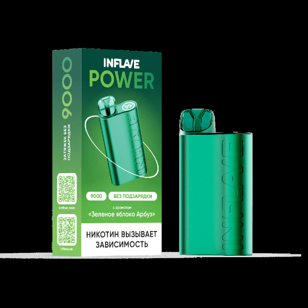 Электронная сигарета INFLAVE POWER 9000 затяжек Зеленое Яблоко Арбуз - купить в Южно-Сахалинске